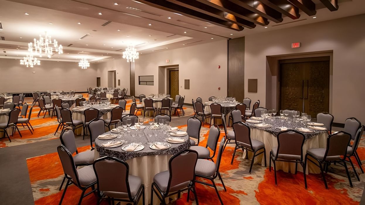 Además, puede dividirse en tres salones más pequeños si necesitas algo más íntimo. Cuenta con internet inalámbrico de alta velocidad, equipo audiovisual, equipo de sonido, recepción independiente y tiene una capacidad máxima de hasta 200 personas.